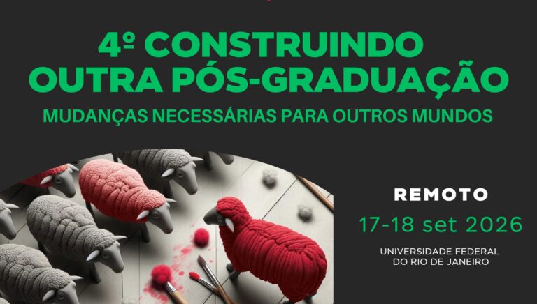 A partir das contribuições desses eventos, convidamos para o 4º Construindo Outra Pós-Graduação: mudanças necessárias para outros mundos que será realizado de 17 a 18 de setembro de 2026, com o foco específico de discutir: